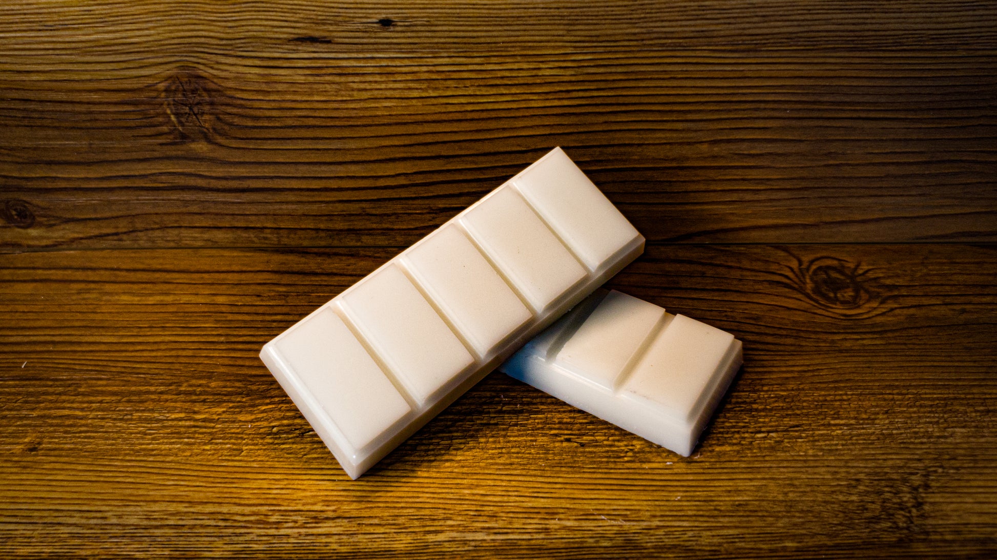 1.5 oz / 45 g coconut wax snap bars in compostable packaging.