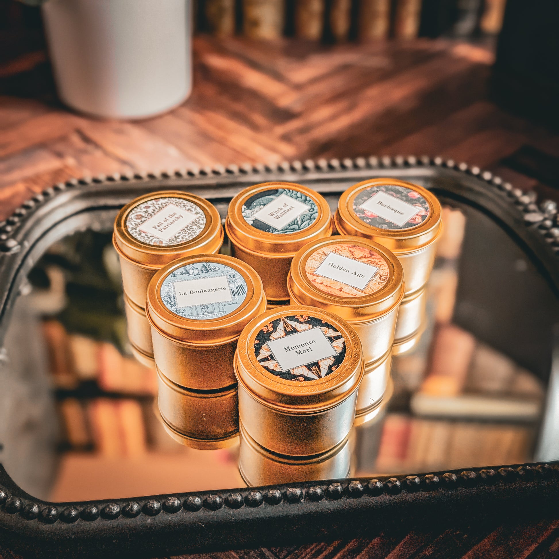 Try our best selling candles in a mini size! Each 1.5 oz tin burns for 12-16 hours, so you'll have plenty of burn time to test out scents, plus you'll receive a $10 credit towards the purchase of a full-sized candle!