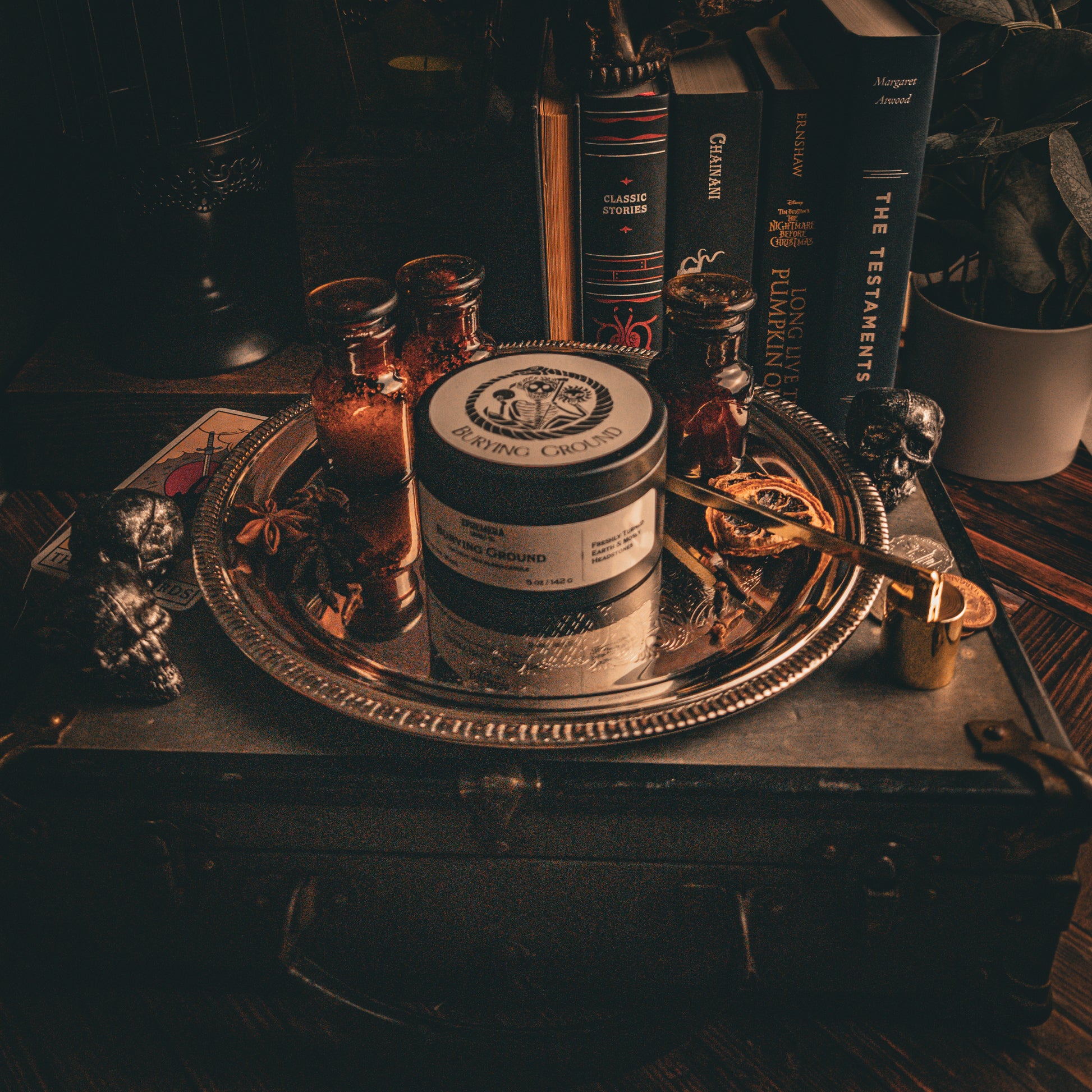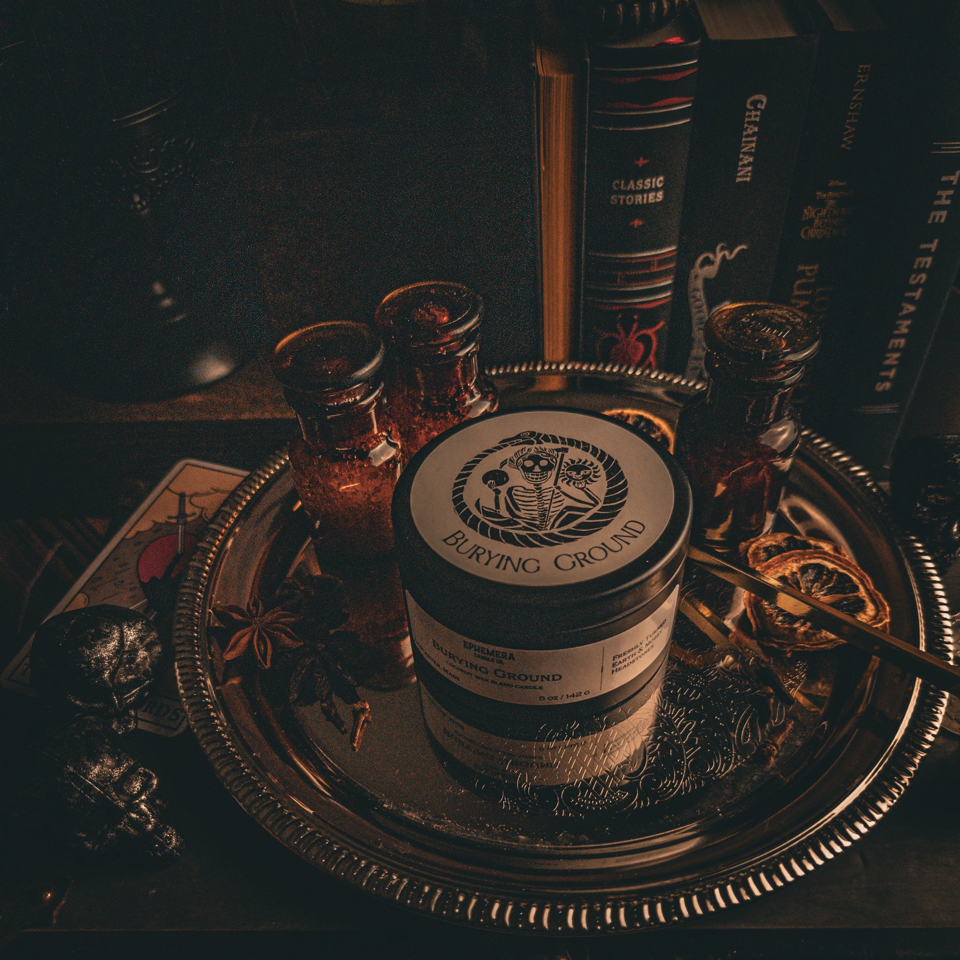 Inspired by the crumbling early New England burying grounds. The scent of rich damp earth, decaying leaves, and mossy headstones.